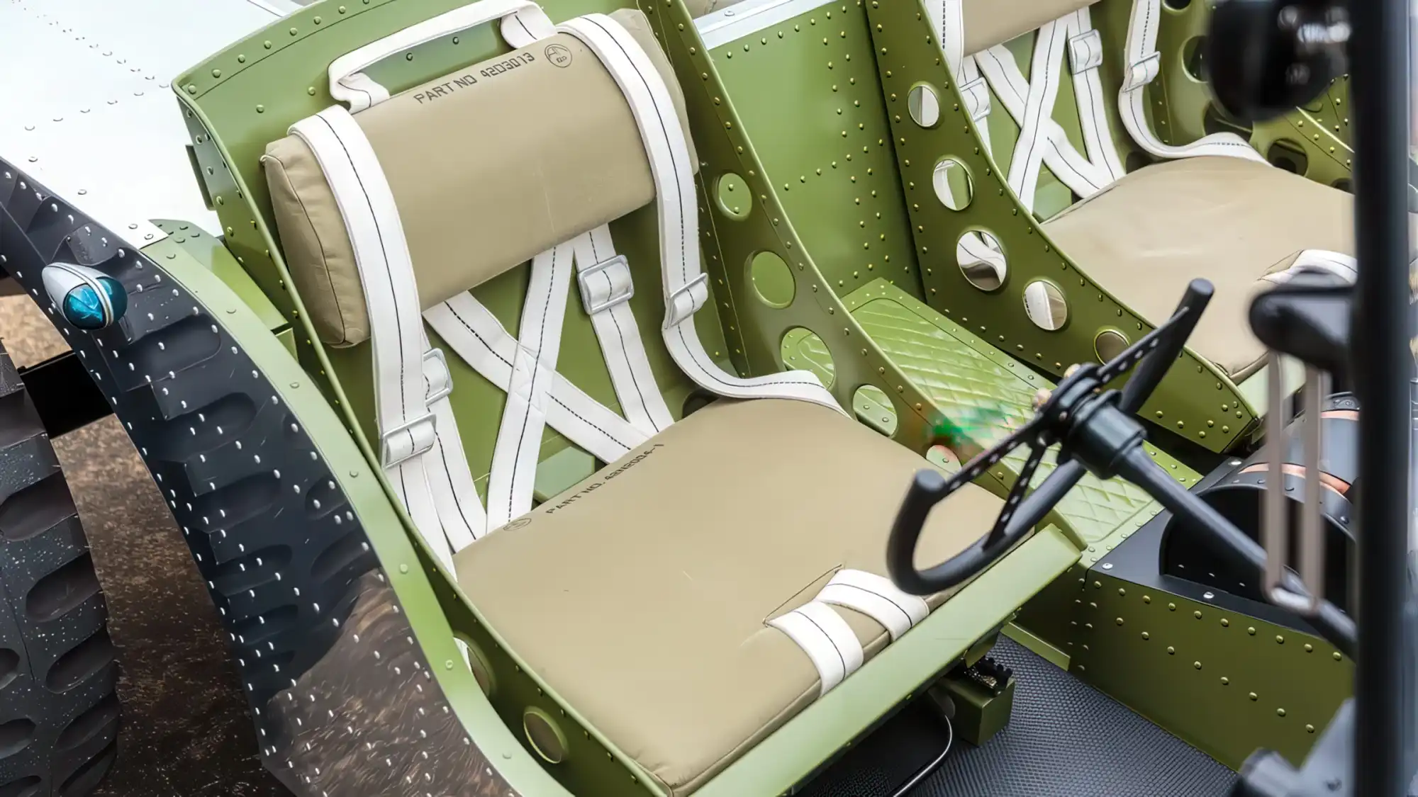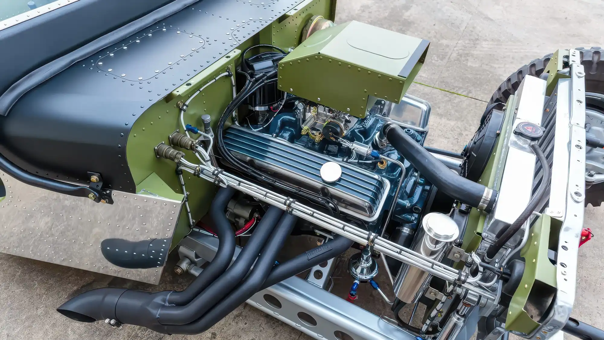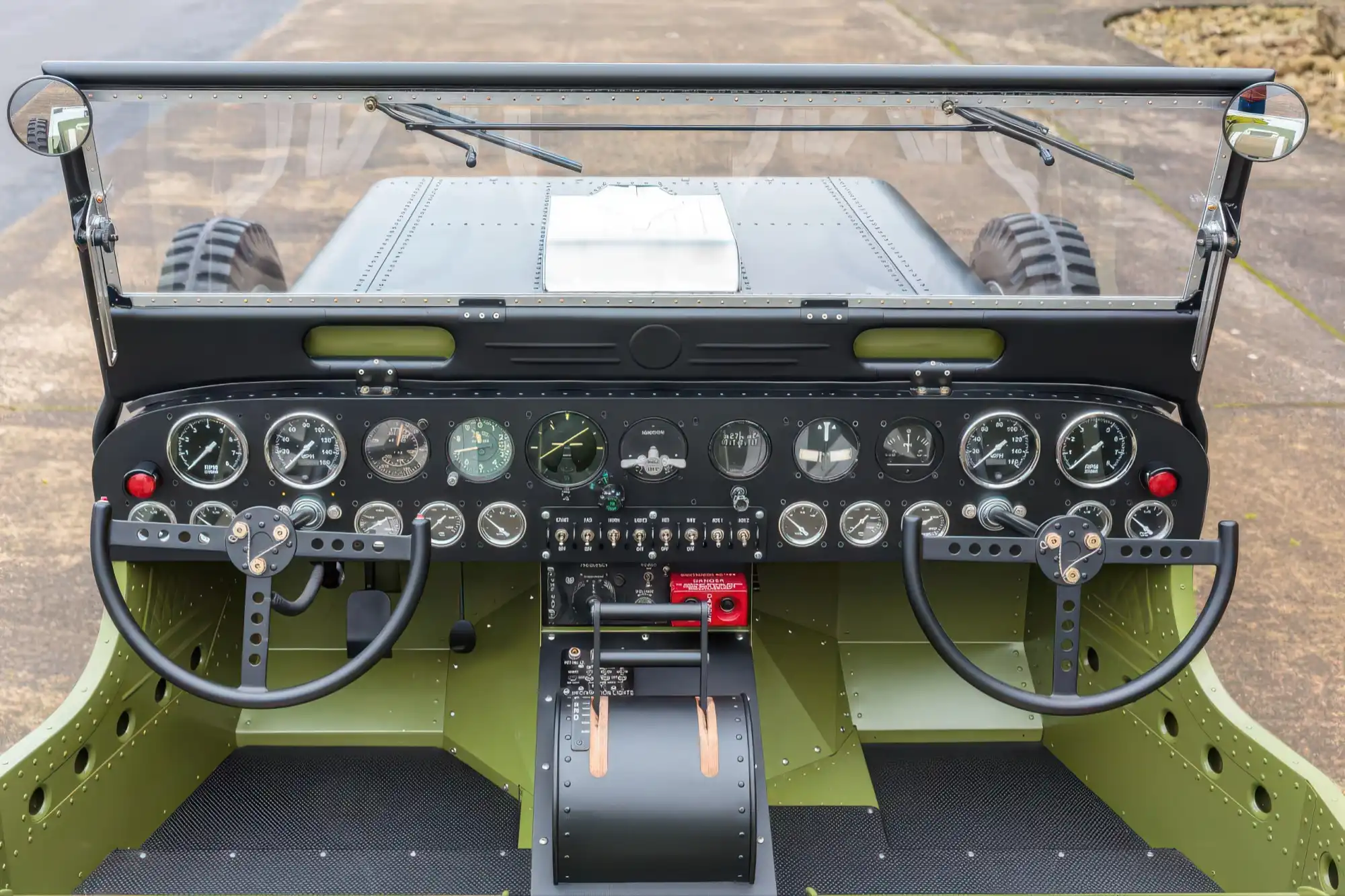 Классический военный джип превратили в кастомный проект, стилизованный под боевой самолет времен Второй мировой войны, с мощным двигателем V8 и специфическим авиационным декором.
