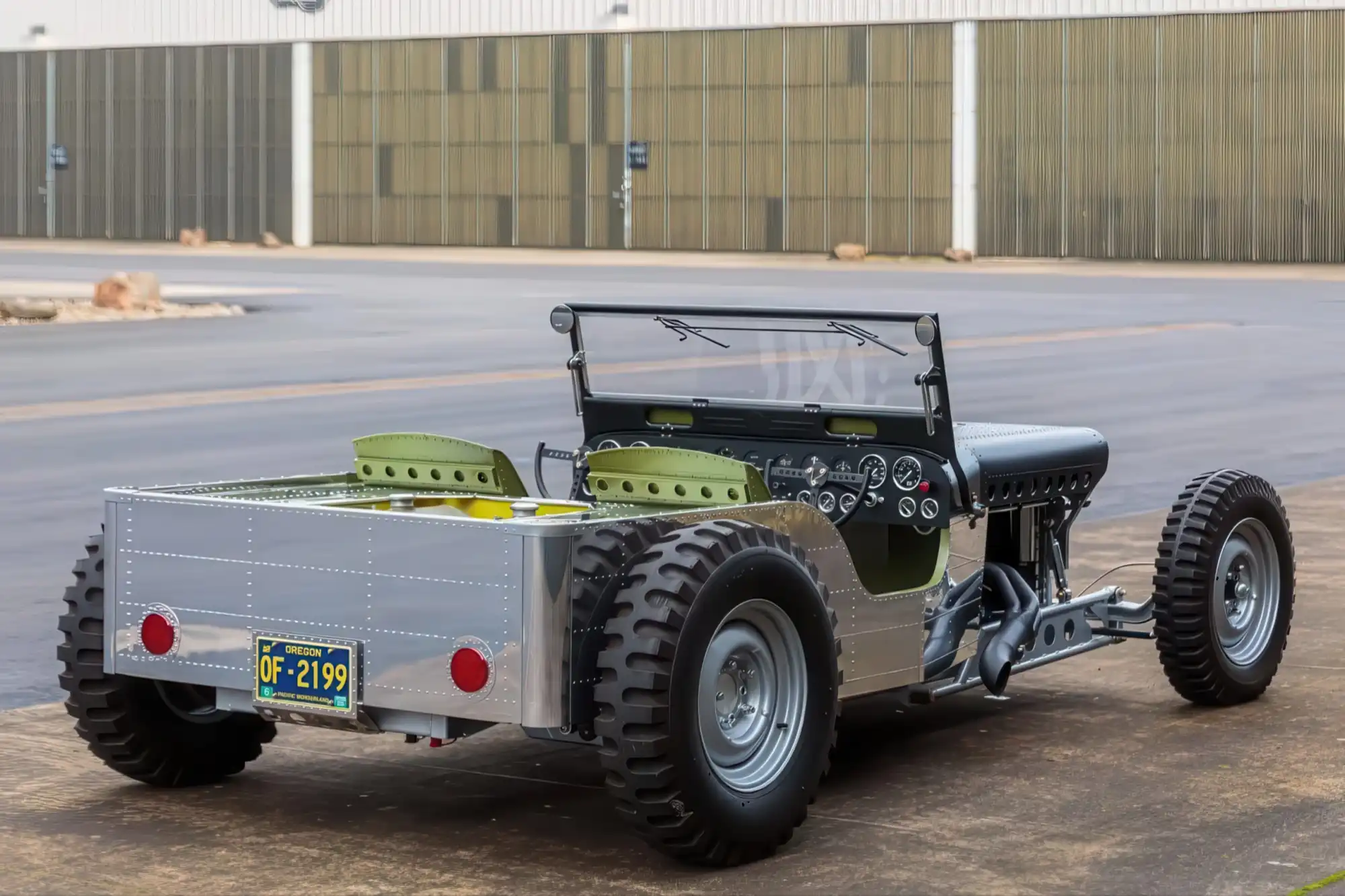 На американской аукционной площадке Bring a Trailer выставили на торги необычный автомобиль, который объединяет в себе эстетику культового армейского внедорожника Willys и элементы авиации сороковых годов. Создатели проекта пошли по пути радикального кастомайзинга, превратив утилитарный полноприводник в низкий и быстрый хот-род. Машина лишилась своих внедорожных способностей, но приобрела уникальный облик, имитирующий фюзеляж истребителя тех лет.