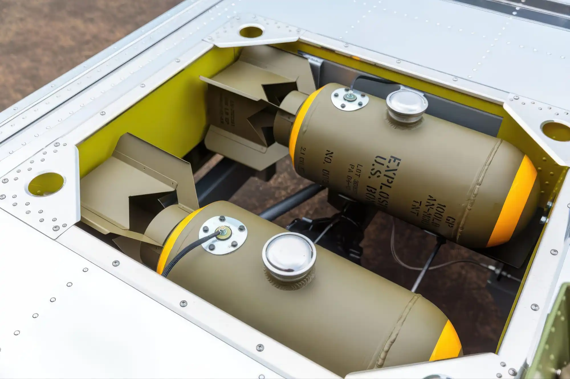 Кузов открытого внедорожника окрашен в матовый оливковый цвет, характерный для военной техники США того периода. Для усиления сходства с самолетом на борта нанесены опознавательные знаки ВВС США, а на передних крыльях красуется изображение зубастой пасти, напоминающее раскраску знаменитых истребителей Curtiss P-40 Warhawk. Вместо стандартного ветрового стекла установлен короткий козырек, имитирующий фонарь кабины пилота, а по бокам капота выведены патрубки выхлопной системы, напоминающие блоки цилиндров авиационного мотора.