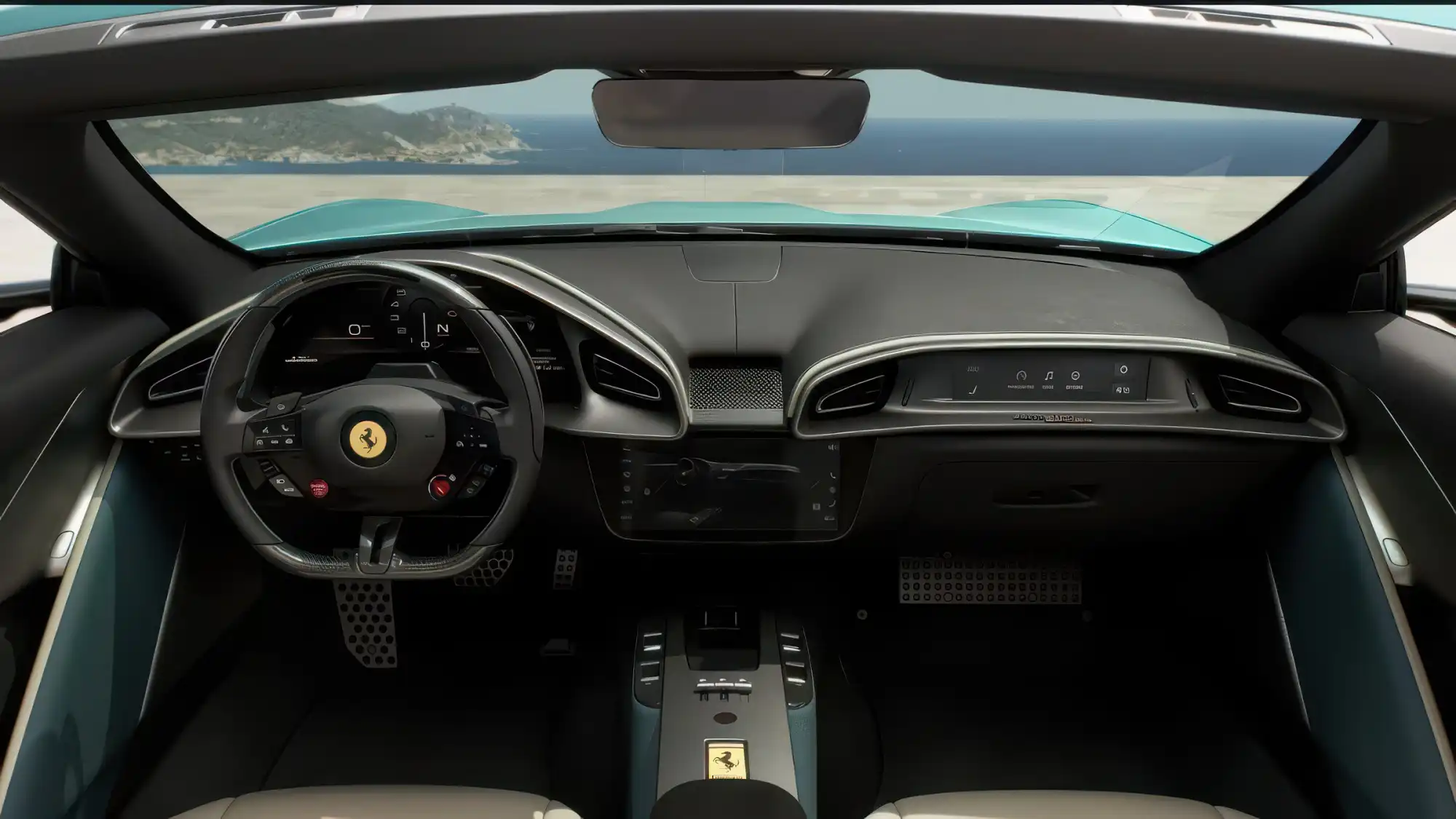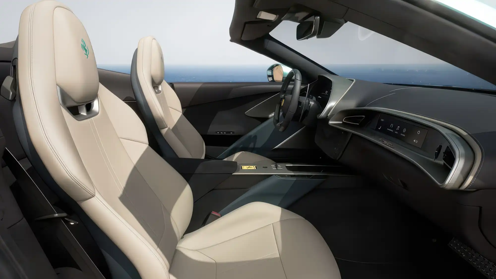 Салон FERRARI AMALFI SPIDER практически полностью повторяет интерьер купе, предлагая водителю концепцию человеко-машинного интерфейса HMI последнего поколения. Рулевое колесо оснащено сенсорными панелями управления, а перед пассажиром установлен опциональный узкий дисплей, отображающий текущую скорость, обороты двигателя и навигационные данные. Для обеспечения комфорта при опущенной крыше автомобиль оборудован электрическим ветрозащитным экраном, положение которого можно регулировать для минимизации турбулентности в кокпите. Система климат-контроля получила специальный алгоритм работы, который учитывает интенсивность солнечного излучения и скорость движения в открытом режиме.