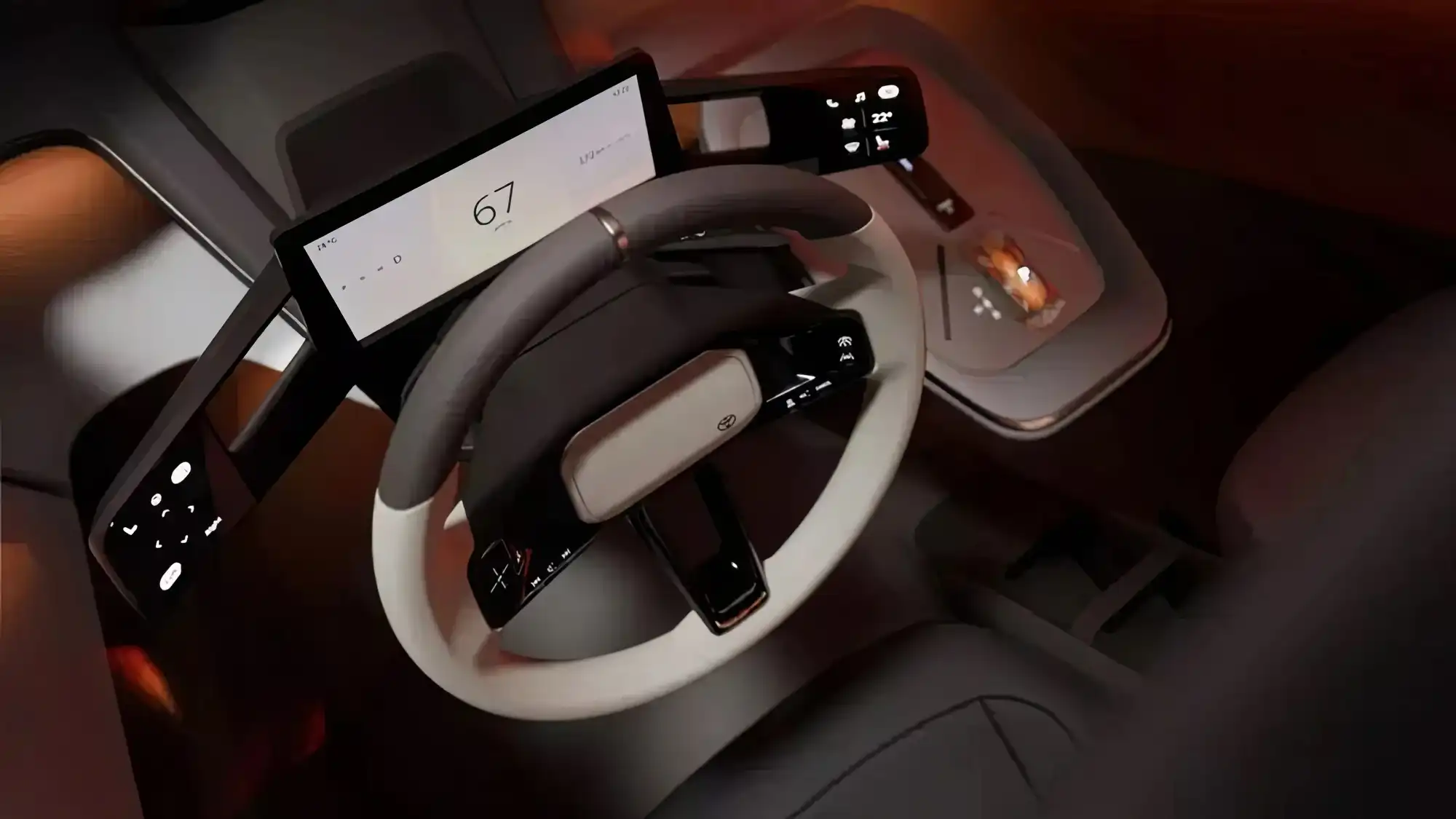 Передние крылья оснащены отверстиями, видимо предназначенными для зарядки. Дверные ручки традиционные, стекла широкие, стойки и крышка багажника украшены черным цветом. Колеса имеют необычный рисунок. Внутри концепта две большие панели замещают центральный монитор. Над головой водителя расположены маленькие экраны для климатических настроек и мультимедиа. Перед пассажирским креслом находится отдельный дисплей для развлечений. Селектор коробки передач помещен на выступающую консоль, декорированную изображением автомобиля.