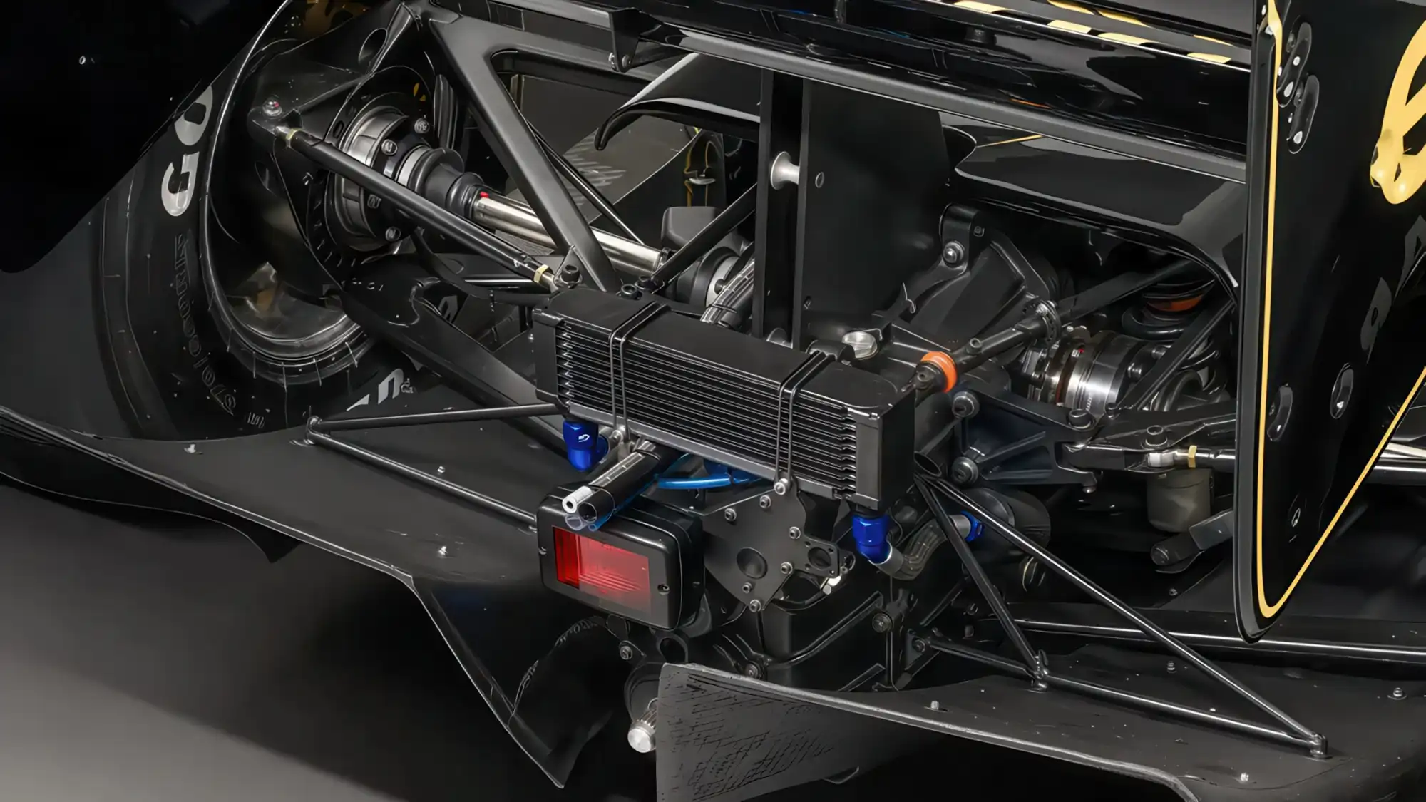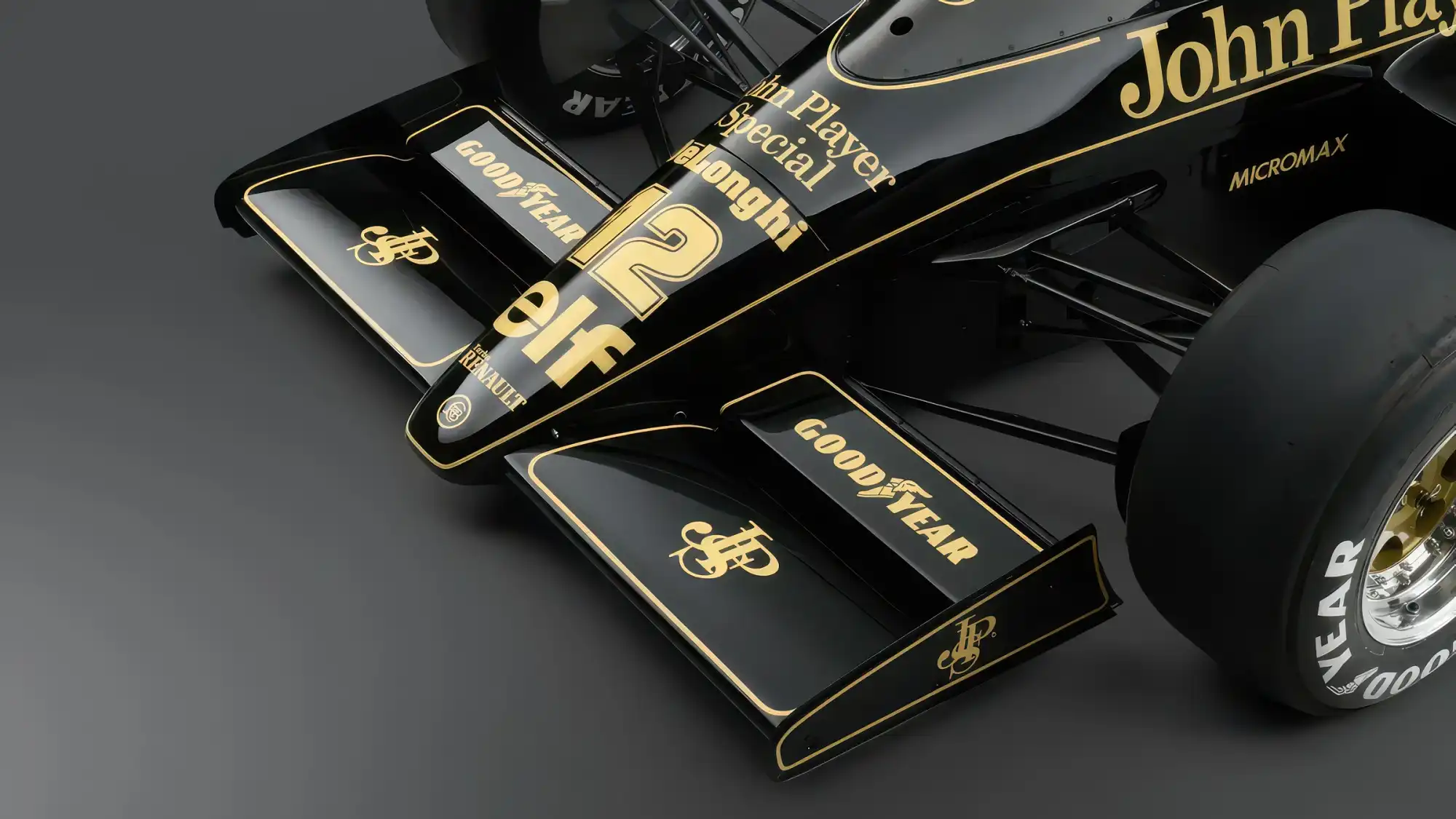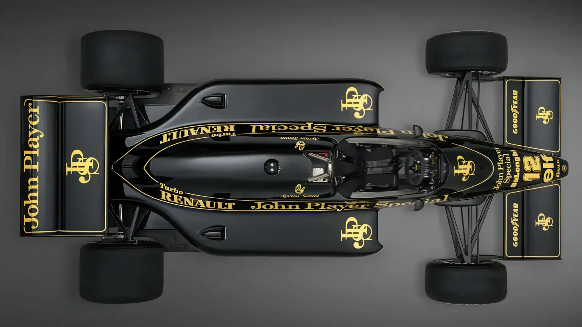 Болид Lotus 97T был спроектирован талантливым инженером Жераром Дюкаружем и стал развитием предыдущей модели 95T. Конструкция автомобиля представляла собой передовое для середины восьмидесятых сочетание углеволокна и кевлара, что обеспечивало высокую жесткость монокока при минимальном весе. Одной из ключевых особенностей модели стали сложные аэродинамические элементы, включая дополнительные закрылки на заднем антикрыле, которые помогали генерировать прижимную силу в условиях изменчивых гоночных трасс. Ливрея автомобиля выполнена в культовых черно-золотых цветах спонсора John Player Special, которые до сих пор считаются одними из самых красивых в истории гонок.