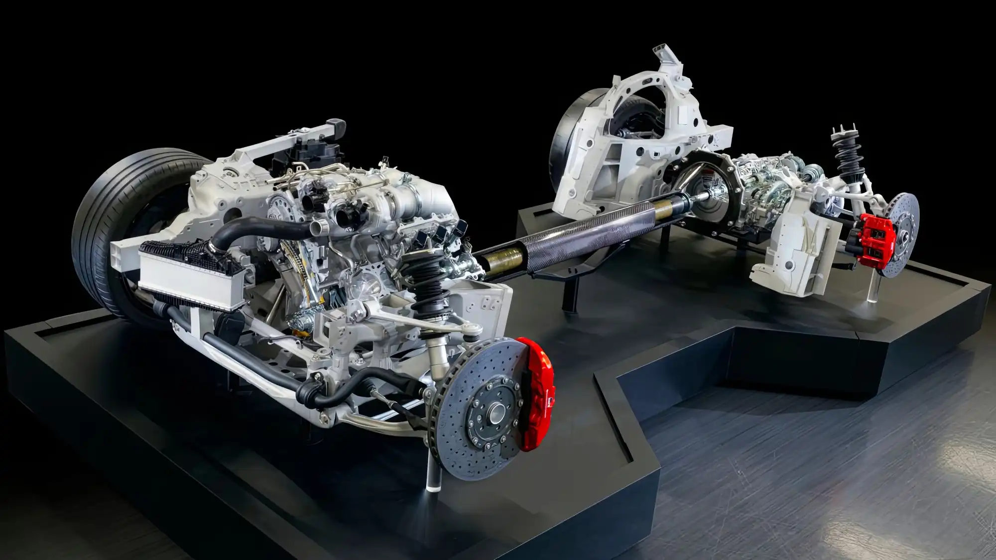 Модель стала первым гибридом в линейке TGR. Крутящий момент передается на заднюю ось через углепластиковый вал к восьмиступенчатому «автомату» с мокрым сцеплением вместо гидротрансформатора. В единый блок с трансмиссией интегрирован электромотор, который компенсирует задержки отклика и сглаживает переключения, а также механический самоблокирующийся дифференциал. Подвеска всех колес — двухрычажная с коваными алюминиевыми рычагами. За торможение отвечают углерод-керамические механизмы Brembo, а за сцепление с дорогой — шины Michelin Pilot Sport Cup 2, разработанные специально для этой модели.