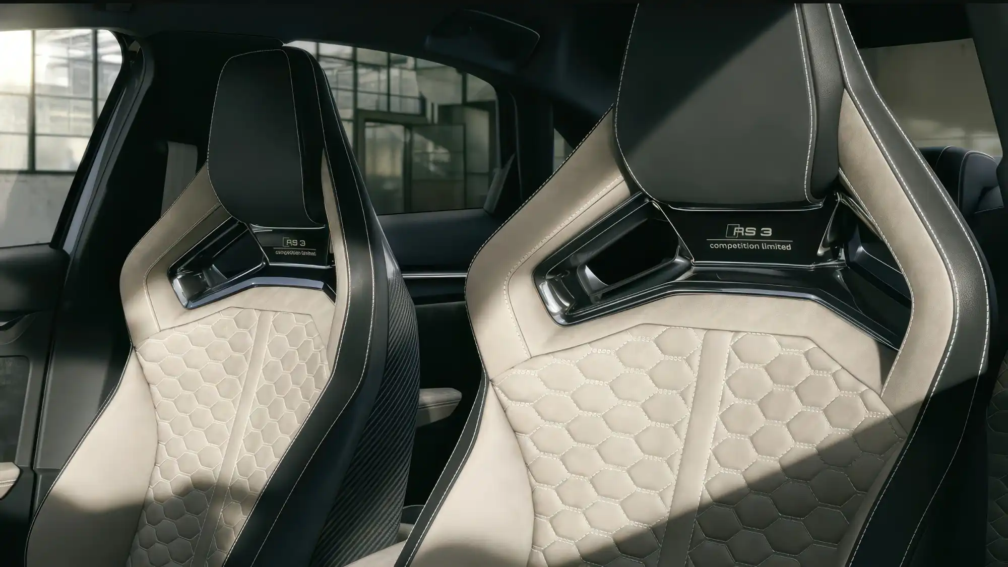 Внешне AUDI RS 3 PERFORMANCE EDITION отличается специфическим декором и световой анимацией. При открытии дверей матричные светодиодные фары отображают число 50 на левой стороне и флаг в клетку на правой. Автомобиль получил уникальные 19-дюймовые колесные диски в цвете темно-серый матовый и черные логотипы колец. В салоне установлены ковшеобразные сиденья RS BUCKET SEATS с каркасом из углеволокна, отделанные микрофиброй DINAMICA и кожей NAPPA. На передней панели со стороны пассажира размещена табличка с порядковым номером автомобиля в серии, а ремни безопасности и прострочка выполнены в контрастном синем цвете MERCATO BLUE.