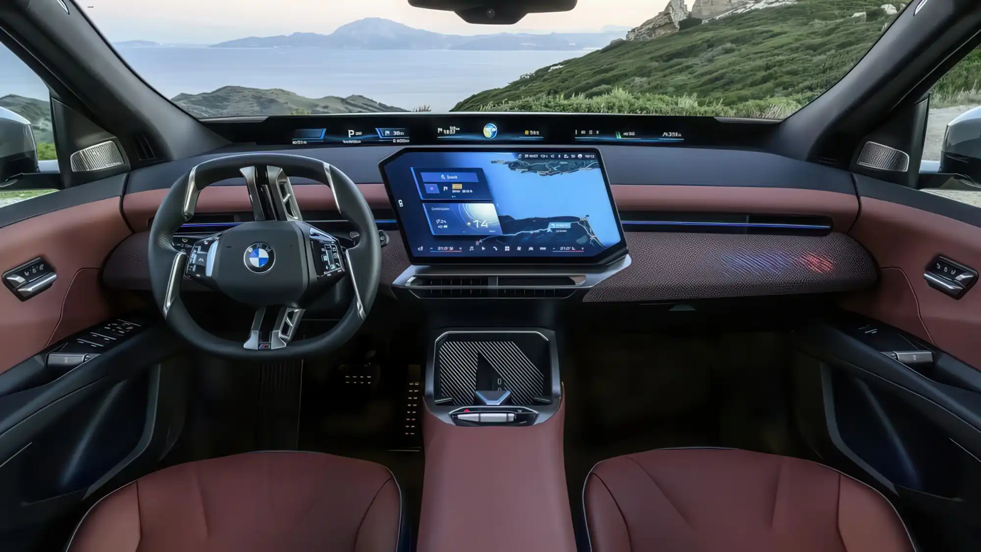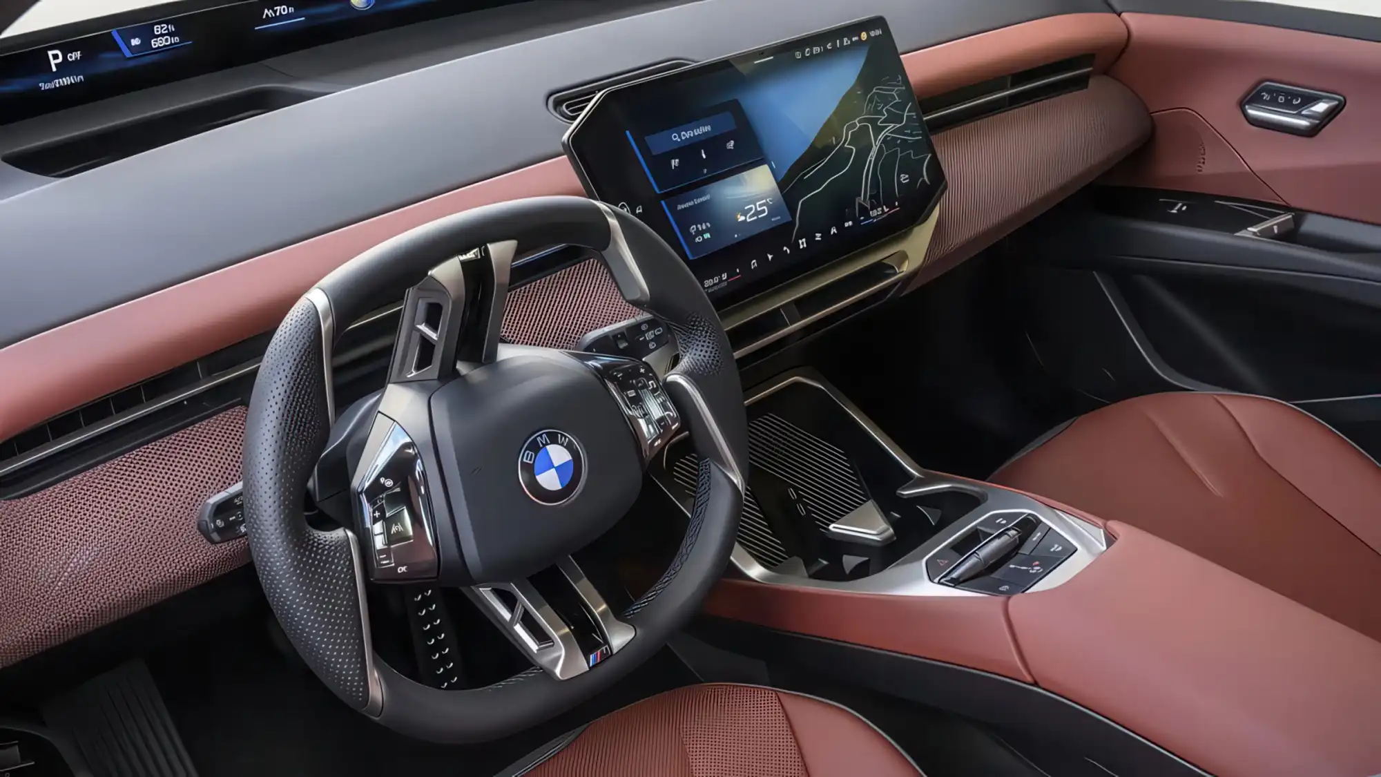 Салон BMW IX3 выполнен в строгом соответствии с премиальными стандартами бренда, предлагая передовые цифровые решения для водителя и пассажиров.